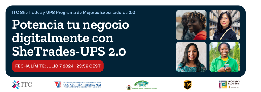 ITC y UPS te invitan a embarcarte en una fascinante experiencia con ITC SheTrades y UPS Programa de Mujeres Exportadoras, una iniciativa de UPS y ITC SheTrades (ONU/OMC). ¡Más grande y mejor! El programa de preparación digital está de vuelta, diseñado exclusivamente para mujeres emprendedoras en México.